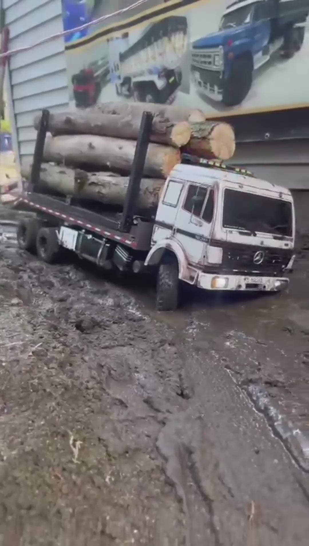 • Carga realista de toras de madeira, com suporte metálico e correntes funcionais